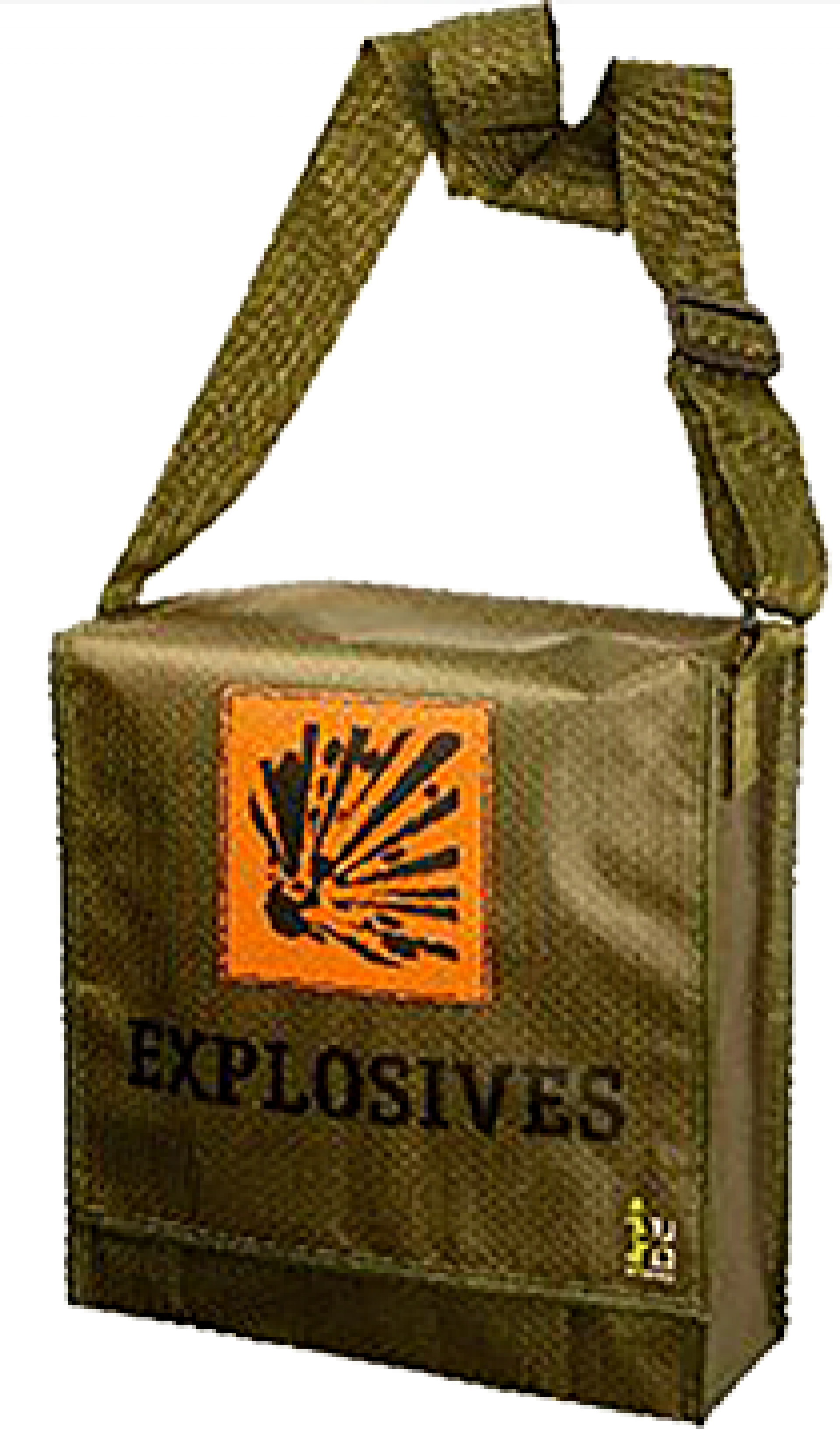Vuurwerktas Explosives. Stevige kuststof tas met draagband. Voor al je knalwerk handig in mee te nemen.